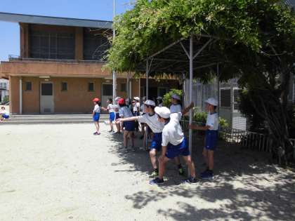 そこで,今日は,運動場で残りの遊びを思いっきりしました。みんな,暑さに負けずよく走ります。