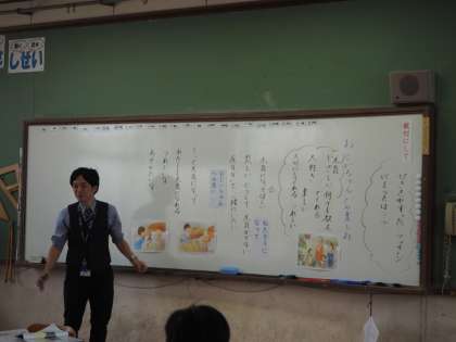 3時間目には1年〜5年は道徳の授業を行いました。1年は「あとかたづけ」です。あとかたづけをしないとどうなりますか?みんなで考えました。2年生は「いいとこみつけた」です。みんなほめられたい。いいところがあります。みんなでみんなの良いところに気づいていきましょう。(写真上)3年は「おじいちゃんとの楽しみ」です。人に親切にすること、思いやりを持つことの大切さを考えました。(写真中)4年は「ちこく」です。ちこくをすることはわるいこと、でもその時の対応について考えます。グループで活発な話し合いをして、みんなの意見を交換しながら授業を進めました。(写真下)5年は「長所をみつけて」必ずひとには良いところがあります。どうしても嫌なところに目が行きがちですが…。みんなで考え、みんなの意見が授業を進めていきます。
