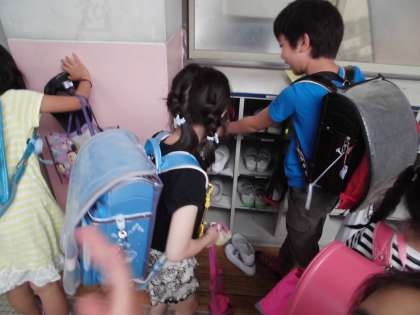 子どもたちが帰った後の靴箱,とってもきれいです。毎日続くといいな。