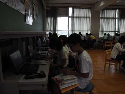 6年生は、動物の呼吸についてコンピュータ室や図書室での「調べ学習」です。パソコンや書籍から得た情報から呼吸についてまとめていきます。6年生になるとパソコンの扱いにも慣れたものです。感心します。