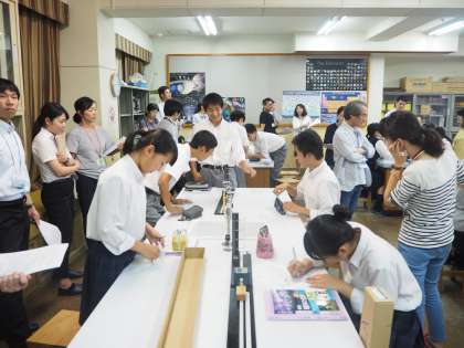 6月14日(木)西ノ京中学校にて、よんきゅう絆プロジェクト小中合同授業研究を行いました。この日は西ノ京中学校の各学年から1クラスずつ、授業を公開し、そこに西ノ京中、朱二小、朱四小、朱六小、朱八小の先生が授業を観察、のち研究協議を行いました。小学校、中学校お互いに授業をみて学ぶことは、小中9年間の一貫した学びを進めるうえで大切です。今度は6月27日(水)に朱六小学校で、西ノ京中学校やブロック内の小学校の先生を迎えて、授業研究を行う予定です。