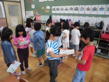 今日は「くちばし」の学習のまとめとして,一人ひとりがつくった「くちばしクイズ」を出し合いました。相手を変えて何度も「問い」と「答え」のやりとりを楽しみました。