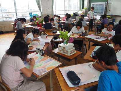 6月20日(水)1年と6年が奇しくも 図工の授業で同じモチーフで描いていました。