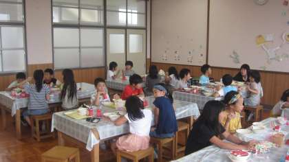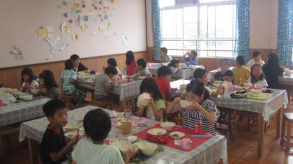 ランチルームで給食を食べました。