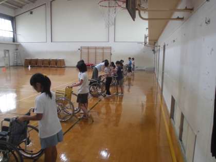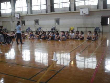 6月のテーマは,『みんなちがってみんないい』ということで,車いす体験に取り組みました。車いすに乗って自分で動かしたり押してもらったり,スロープなどを押したりする体験を通して,車いすを使う人の怖さや操作することの大変さなどに気が付くことができたと思います。この体験を,実生活の中で活かしていけるといいですね。