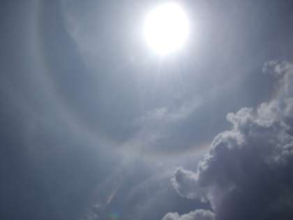 昼休み,「先生,太陽の周りに丸い虹が出てる!」と子どもたちが興奮気味に職員室へ駈け込んできました。