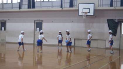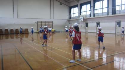 久しぶりの体育館での学習を楽しんでいました。
