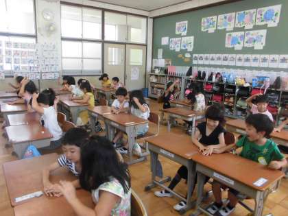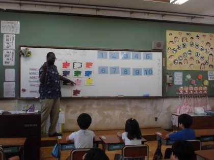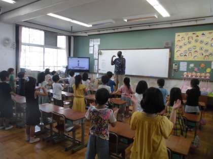テビン先生との外国語の学習がありました。ハローソングであいさつを練習した後,新しく「数字」と「色」の言い方を習いました。リズムに合わせて繰り返し単語を言ったり,ゲームをしたりして楽しく学ぶことができました。
