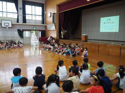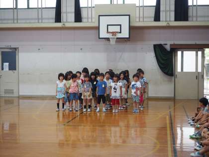 1年は「トマト」という詩を暗唱しました。また同じ詩を合唱しました。