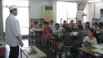 今日の総合的な学習の時間に「よし廣」さんに行って和菓子の歴史や作り方,作り手さんの思いについて教えてもらいました。