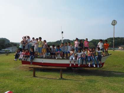 子どもちは、広い場所に大騒ぎ、暑さをものともせず走り回っていました。