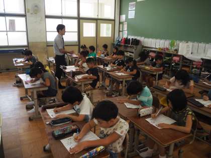 8月27日(月)1年と3年、4年の教室のようすです。