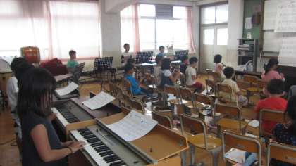 「ゆかいな木琴」のそれぞれのパートのリズムの違いを感じ取り,工夫して演奏できるように練習しました。