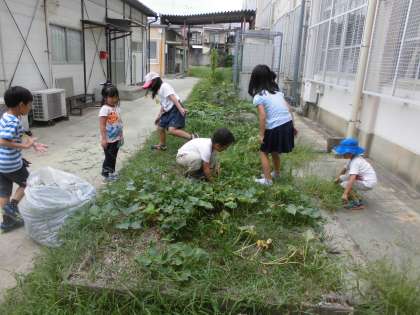 春に苗を植えたさつまいもがぐんぐん成長しています。周りの雑草もぐんぐん成長中です。そうじ時間に仕事が終わった班から草ぬきをしてくれました。アッという間にゴミ袋がいっぱいに。おいも掘り,おいもパーティーが楽しみです。