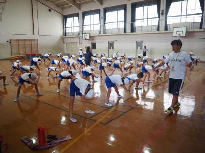 9月3日(月) 中学年の3・4年が合同で運動会の練習です。ソーラン節の演舞の練習を体育館でしていました。元気な声が体育館に響いていました。