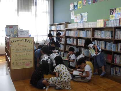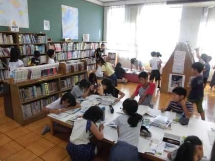 久しぶりに図書室へ行き,好きの本を読んだり借りたりしました。ちょうど5年生が調べ学習中でしたが,お互い静かに過ごすことができました。場に応じた行動ができることも大きな成長です。