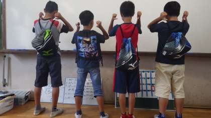 夏休み前に作り上げ,お家の人に補強していただいたすばらしいナップザックです。