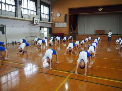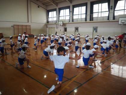 9月5日(水)3・4年生の運動会での演舞ソーランの練習です。元気の良い声が体育館に響いていました。
