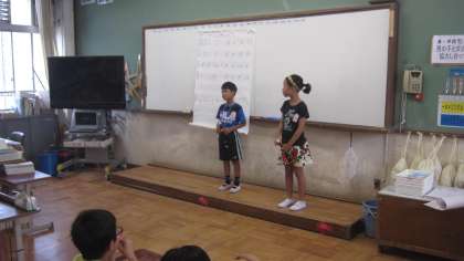 朝の会では,日直さんが2学期の目標をみんなの前で発表しています。