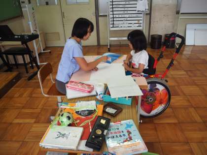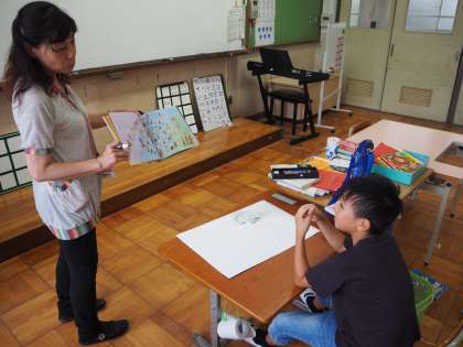9月6日(木) 3組の授業のようすです。お話しを絵にします。いろんな本をみて、選び自分の気に入った絵本から自分なりの絵を描きます。今日はその最初の時間です。さてどんな絵ができあがるのか、楽しみです。