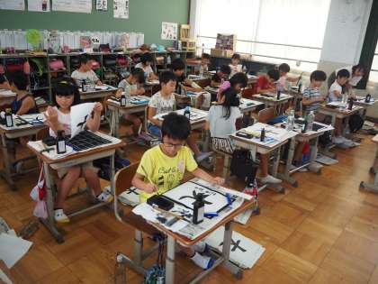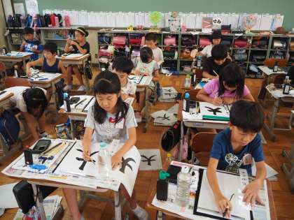 9月6日(木)3年生は毛筆の書道の時間におじゃましました。「大」の字を書いています。教室には墨の香りが漂い、みんな真剣に半紙に向かい、筆を運んでいました。書道はなぜか凛とした落ち着いた時間が醸し出されるものですね。