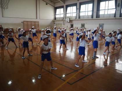 9月6日(木)午後 3・4年生は体育館で運動会での演舞ソーラン節の練習です。この日は音楽に合わせて、通し稽古です。運動会までちょうど今日で1ケ月です。楽しみですね。