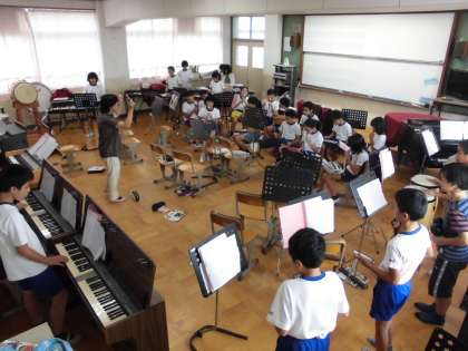 音楽の時間に器楽合奏をしています。曲目は,『アイ ライク エリーゼ』。夏休み前からパート練習をしてきました。今日の5時間目は,全員で合奏する事3回目。真剣な顔をして自分のパートを演奏しています。そして,みんなの心が一つになってきました。