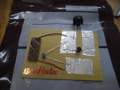 工房学習では,「音を奏でる不思議な石ころ」作りに取り組みました。探究館の先生方に丁寧に説明していただきながら,4つの電子部品で電子オルゴールができあがりました。学校に帰って,早速作品を取り出して聴いていました。
