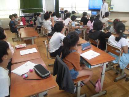 3・4校時は,校長先生による理科の特別授業でした。虫めがねとピンセットを使いたくさんの小魚の中から自分の好きな魚を選り分けていきました。”タツノオトシゴを見つけた人は幸運”ということで,みんな一生懸命に探していました。(1匹だけ見つかりました。)校長先生,楽しい授業をありがとうございました。