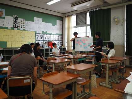 9月18日(火)6時間目 4年生を対象に道徳の授業研究を行いました。本校の教員が授業参観を行い、そののち研究協議をグループ別で行いました。なお今回京都市総合教育センター研修主事森本先生に6月に引き続き、指導助言に来ていただきました。道徳が特別の教科として教科化されて、道徳の授業について研究を進めていきます。