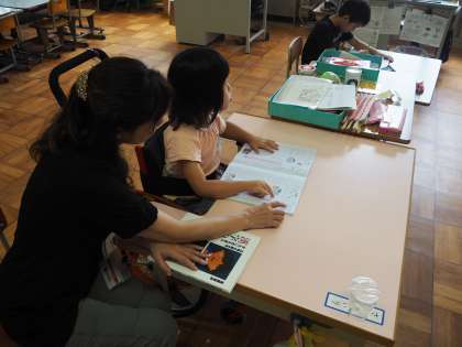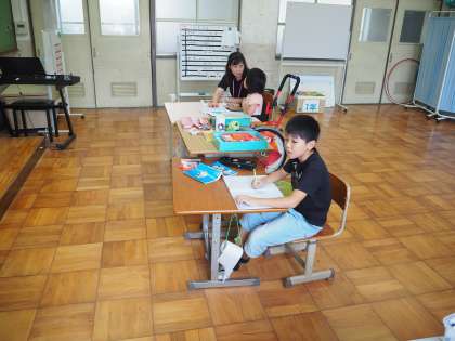 9月18日(火)3組の授業のようすを見に行きました。漢字の書き取りです。それぞれ書き取り帳を前に練習していました。