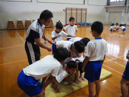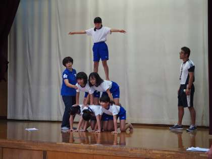 9月20日(木)5・6年生の組体操の練習のようすです。いよいよ3段のピラミッドに挑みます。さすが6年生、昨年取り組んだことをしっかり覚えています。それを見て5年生も練習です。