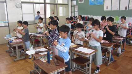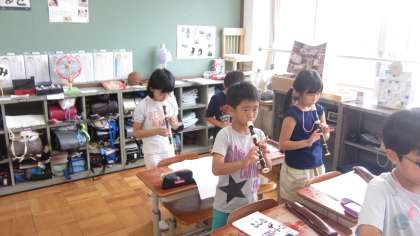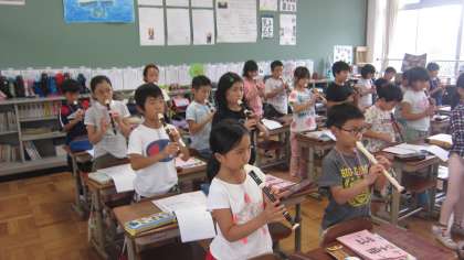 リコーダーの演奏,みんなで合わせて歌う練習を頑張っています。