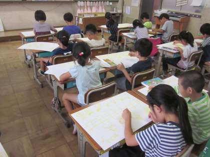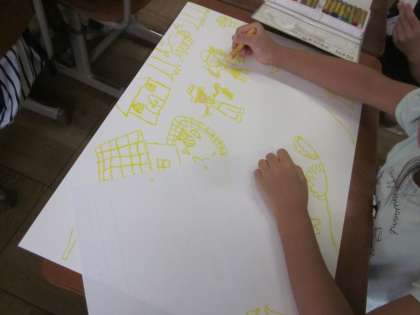 下描きをした絵に色を塗り始めました。色の順番を考えて明るい色から塗りました。上手になってきました。