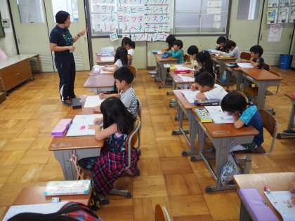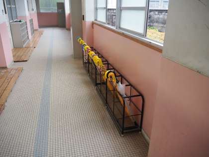 さて下の写真は1年の教室の前にある傘立てです。傘もきれいに並べるとちょっと雰囲気が変わりますね。整理整頓という言葉だけでなく、何となく普通の廊下がちょっとアートになります。
