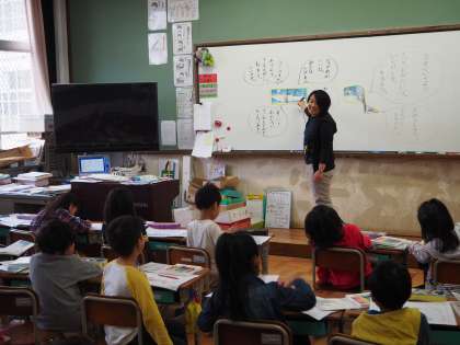 10月15日(月)1年の国語です。他のページでも上がっていました。教室で担任の先生が「くじらぐも」のお話しをしていました。子どもたちは想像力を膨らませていきます。運動場で手をつないで、くじらぐもを呼んでいます。子どもたちの素直さにちょっと感動です。
