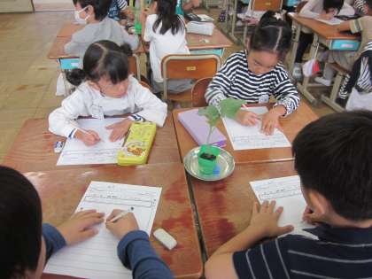 『ぐんぐんそだて』の学習です。あきからそだてるブロッコリーの苗を観察しました。畑の手入れもして育てる準備をしました。
