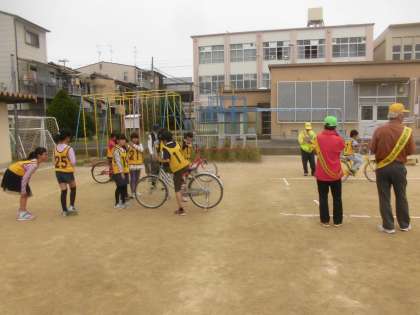 中京警察署や地域の方々のご協力により,自転車教室を実施しました。ゲストとしてプロ野球女子チーム京都フローラの選手にも来ていただき,子どもたちはとても嬉しそうでした。普段は,何げなく乗っている自転車ですが,安全確認や交通規則などを意識しながら安全に乗るのは,相当難しいと感じたようです。事故に合わないためにも,今日の学習を活かしてほしいと思います。ご協力いただいた皆様,どうもありがとうございました。