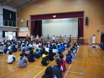 10月18日(木)児童朝会を行いました。この日は後記代表委員の認証式です。後期代表委員に選出された子どもたちが、みんなも前で、抱負とお話ししてくれました。代表委員のみなさん、よろしくお願いします。