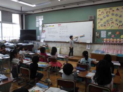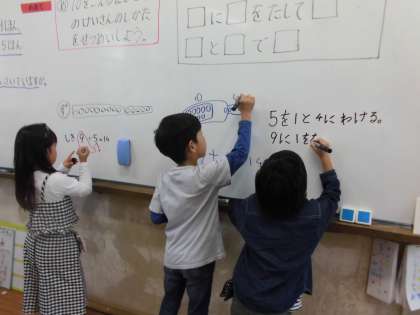 くりあがりの足し算を学習中です。10のまとまりをつくって考えています。ブロックや図を使って説明するのも上手くなってきました。
