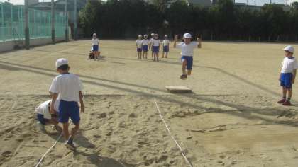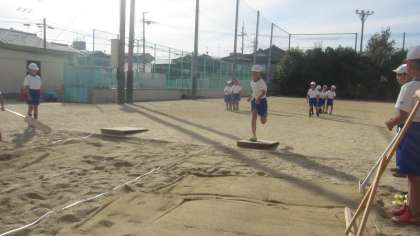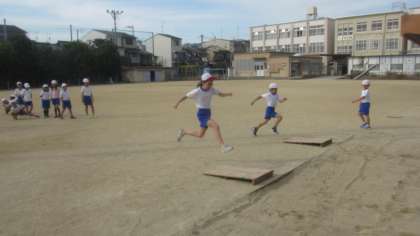 短い助走で踏み切って跳ぶをめあてに学習しました。