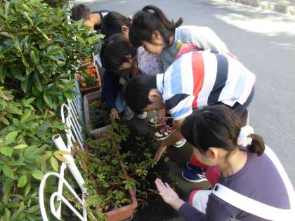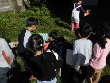 学校にいるいきものや、見つけたものを文章でまとめる学習をしています。何について書くか,学校中を探しました。うさぎ,てんとう虫,くも,どんぐり,おじぎそう,おちば。。。たくさん知らせたいものが見つかったようです。