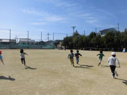 今日は,あそびがかりさん企画の「逃走中」をみんなでしました。時間短め,復活なしのオリジナルルールでしたが,鬼を変えながら何度もしました。いいお天気の下,楽しく遊ぶことができました。