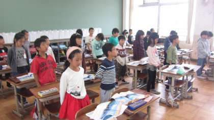 「ふじ山」の範唱を聴き,歌詞の表す情景を思い浮かべながら歌いました。
