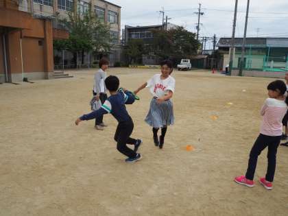 10月23日(火)大文字駅伝予選会を明日に控え、休み時間に襷渡しの確認をしていました。明日は朱六の緑の襷をしっかりつないでください。頑張れ6年生!!!