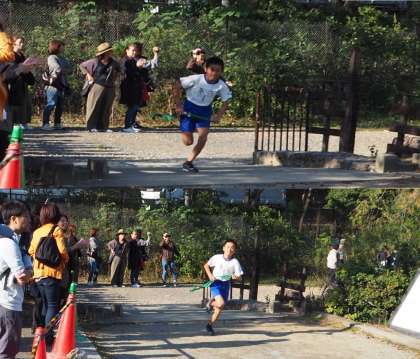 スタートから各走者が中継地点へと戻ってきて、タスキをつなぎます。