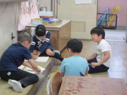 「お手紙」の学習をしています。音読劇をするために,役を決めて練習を始めました。