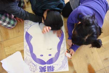 昔の遊びで、福笑いをしました。