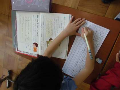 字の間違いを見つけ,正しい文に書き直す学習をしました。「は・を・へ」の使い方だけでなく,1マス空けることやかぎの使い方などにも気をつけて書くことができました。日記の宿題でも,正しい文の書き方を意識して取り組んで欲しいと思います。