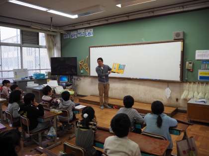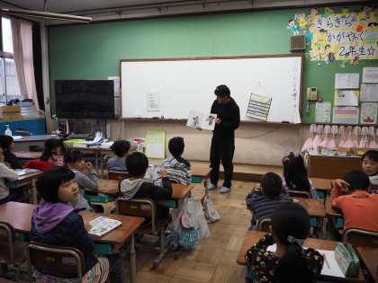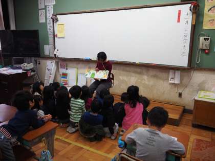 担任するクラスとは違うクラスへ行って、よみきかせをします。
